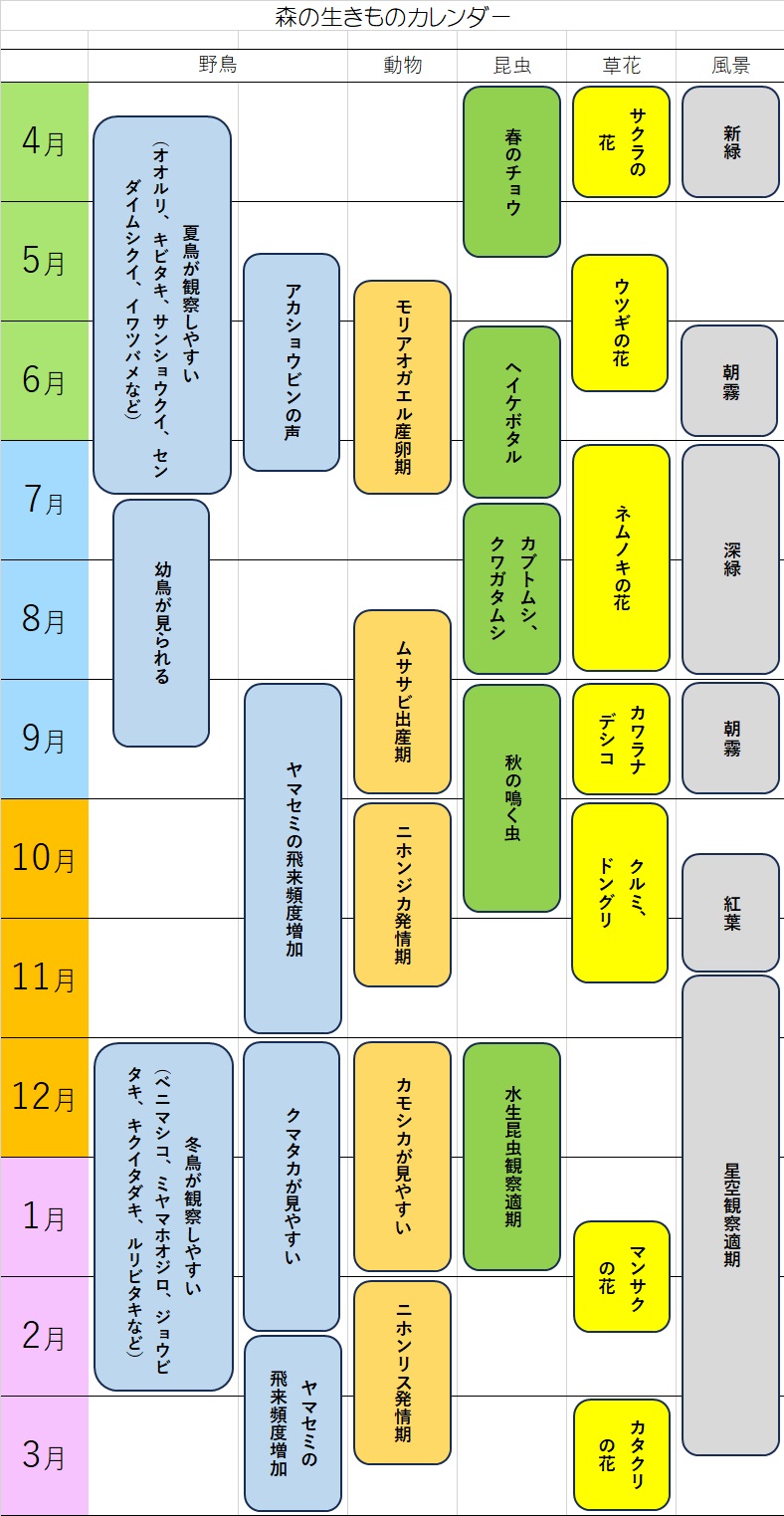 |南アルプス邑野鳥公園| 森の生きものカレンダー|