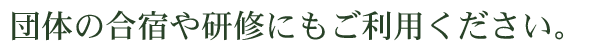 団体でご利用のお客様は、ご予算の都合に合わせて宿泊費や各施設利用料金を割引できる場合がございます。